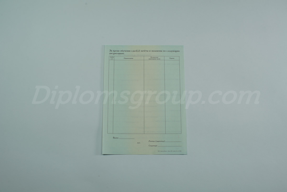• Мы полностью сохраняем аутентичный стиль выбранного заведения. На документе будут присутствовать актуальные печати и подписи, это значит, что вы прошли все требования образовательных стандартов. Корректное заполнение с соблюдением норм Министерства образования обеспечивается благодаря работе высококфалифицированных специалистов;